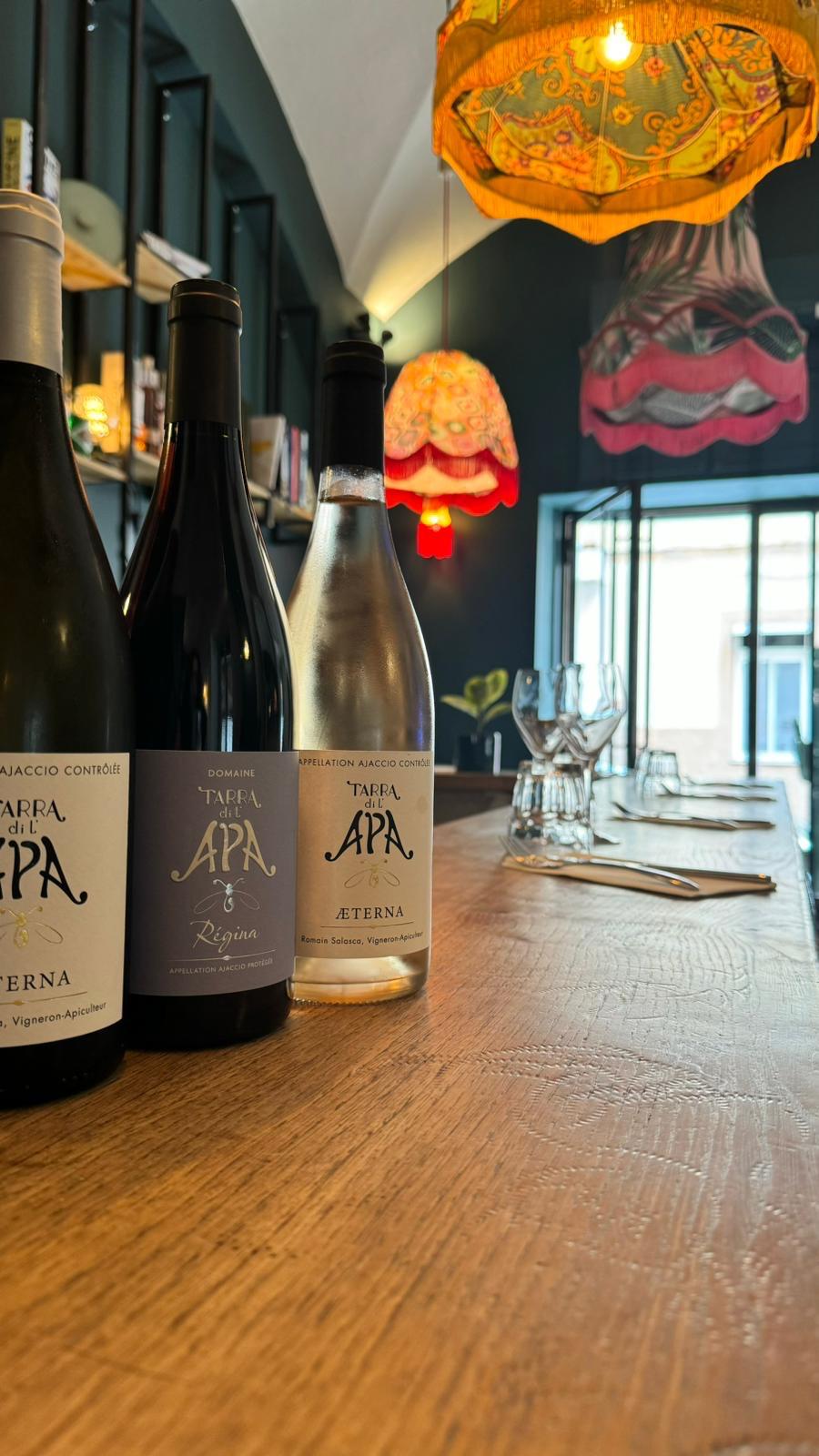 Chez Ô Vent d'Ange, la cave à vins est pensée comme une extension naturelle de notre passion pour le terroir corse. Nous y rassemblons une sélection rigoureuse de vins rouges, blancs et rosés issus de cépages autochtones. Notre démarche consiste à valoriser les vignerons de l’île qui travaillent dans le respect de la terre et des traditions. Chaque bouteille a été choisie pour son équilibre, sa typicité et sa capacité à accompagner notre cuisine de façon harmonieuse.